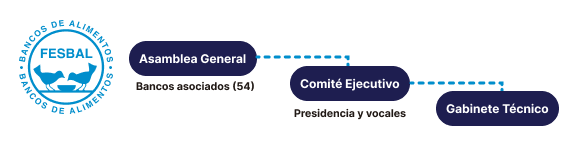 Lo forman una máximo de 11 y un mínimo de 9, personas voluntarias procedentes de los Bancos de Alimentos elegidos democráticamente por la Asamblea General y está compuesto por: Presidencia, Vicepresidencia, Tesorería, Secretaría y vocales.
